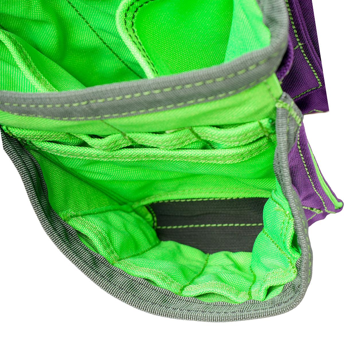 - Inside-Out color configuration: Outside Purple, Inside Hi-Vis Green, Trim Camo Green, Hi-Vis Green Stitching.